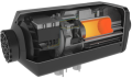 Отопитель прогоняет через себя холодный воздух, который забирается из салона, а затем отдаёт его уже теплым. Встроенные датчики позволяют устройству работать автономно, самостоятельно включаясь и выключаясь, поддерживая при этом заданный уровень температуры.